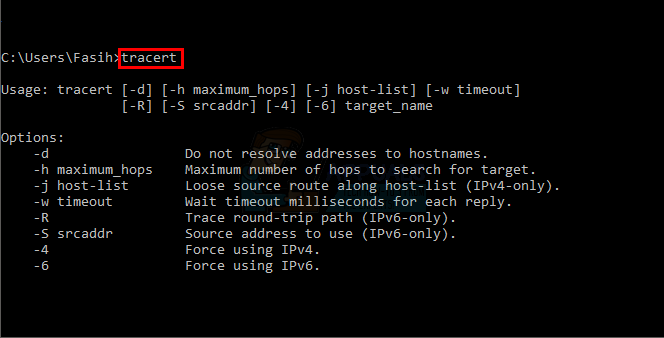 That’s what we were doing while using the tracert. We were only mentioning an IP Address or a hostname.