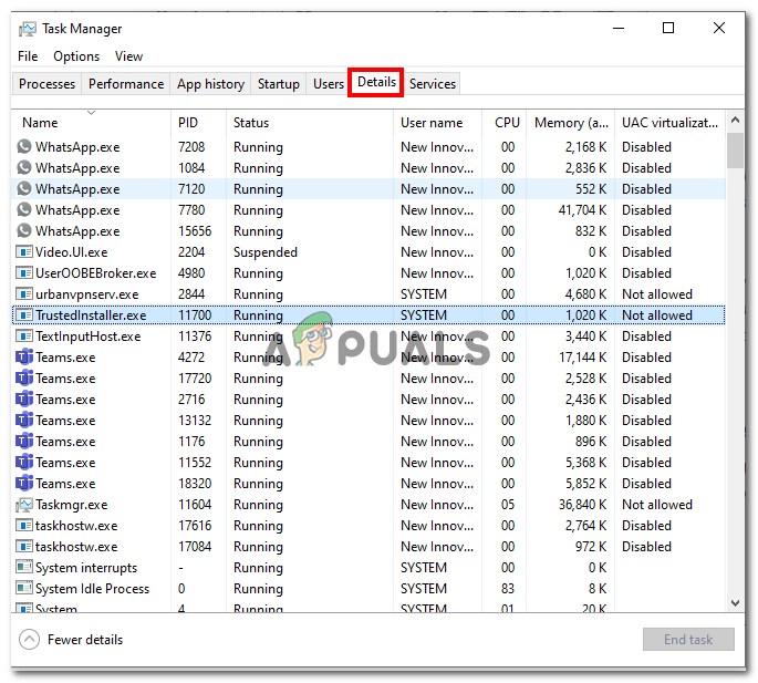 - Navigate to the details option located in the task manager as shown in the image.