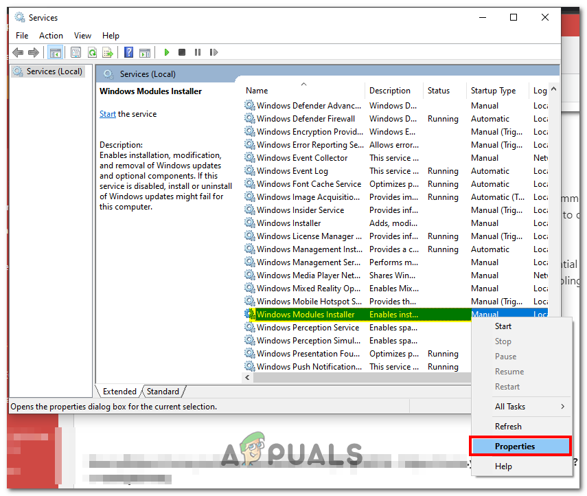- In the list of services locate the Windows Module installer service.