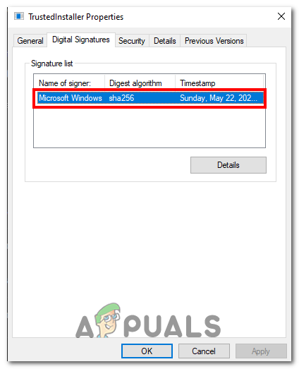 The legitimate TrustedInstaller.exe file is signed by Microsoft. If there is no digital signature or the signature is from an unknown source, it might indicate a malicious file. Here’s how to check the Digital Signature: