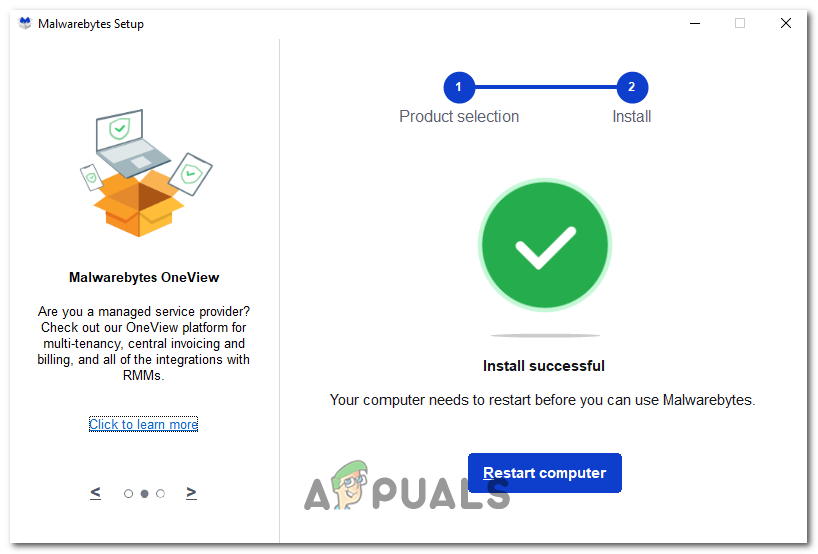 - Once the installation is finished, the application will require you to restart your computer.