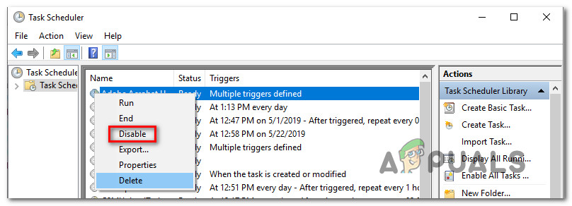 - When you see it, right-click on it and choose Disable from the context menu to disable the task altogether.