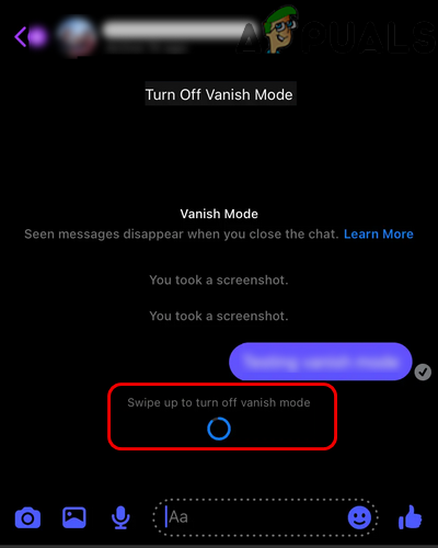 The Android version of Messenger also holds a shortcut to open a chat in the Vanish Mode. To do so, head to a chat in Messenger, swipe up on the screen until the text of the Vanish Mode is shown, keep holding until the circle fills up, then release and the chat will be launched in the Vanish Mode. To disable Vanish Mode on a chat simply swipe up on the chat screen.