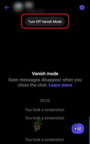 Turn off Vanish Mode in a Messenger’s Chat