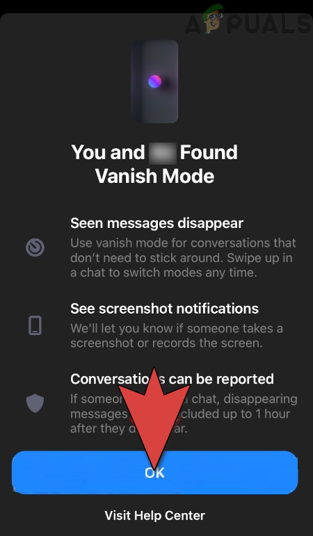 Tap on OK to Open the Vanish Mode of a Chat in Messenger - Then wait for a response and afterward, continue with the chat (if the other party accepts to use the Vanish Mode).