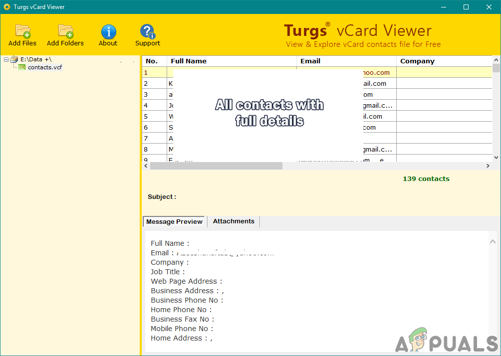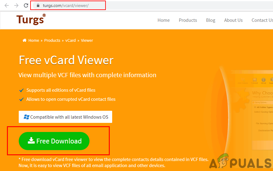 - There are many VCF viewing software that you can find, we will be using Turgs vCard Viewer to demonstrate how it works. Go to the following link to download it: Turgs vCard Viewer