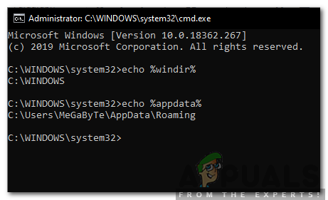 Typing cmd in the Run Prompt and pressing “Shift”+ “Ctrl” + “Enter” - Type in “Echo” and include the command along with the percentage symbols before and after it.