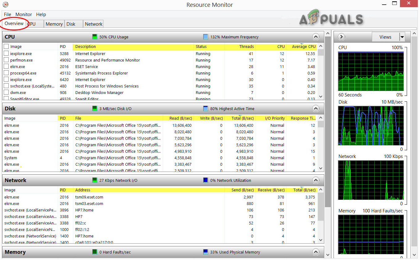 Resource Monitor - Even for the problems serious in nature, try to repair in spite of reinstalling Windows, for Windows 8 & 10, execute the