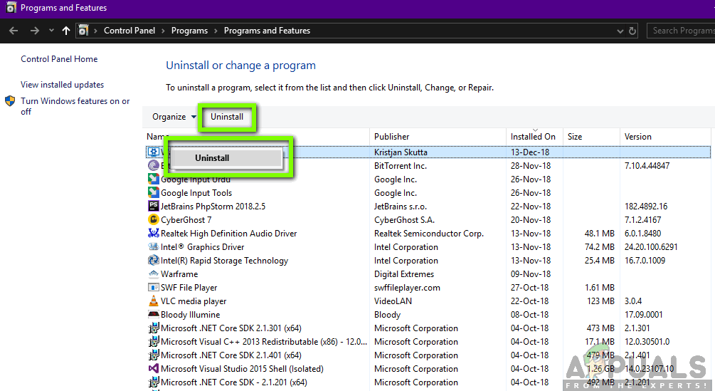 There are several different ways through which you can attempt to remove the adware from your computer. We will start with the easiest and simplest methods and increase our complexity if normal uninstallation doesn’t work for you.