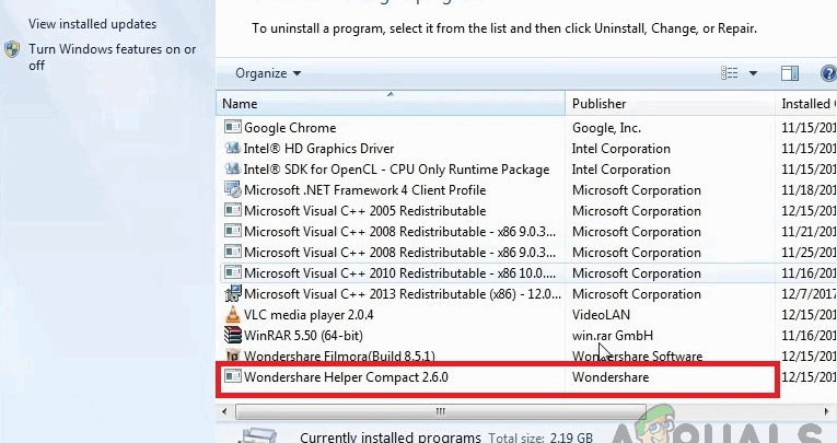 Each Windows copy has an application manager where all the installed packages are displayed. It also lists the version and the installation dates as well. In our first attempt, we will try to uninstall Wondershare Helper Compact using the default application manager and see if this does the trick. Make sure that you are logged in as an administrator on your computer before proceeding.