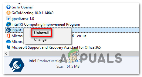 Uninstalling the Intel Update Manager application - Once you’re inside the uninstallation screen, follow the on-screen prompts to complete the operation, then restart your computer.