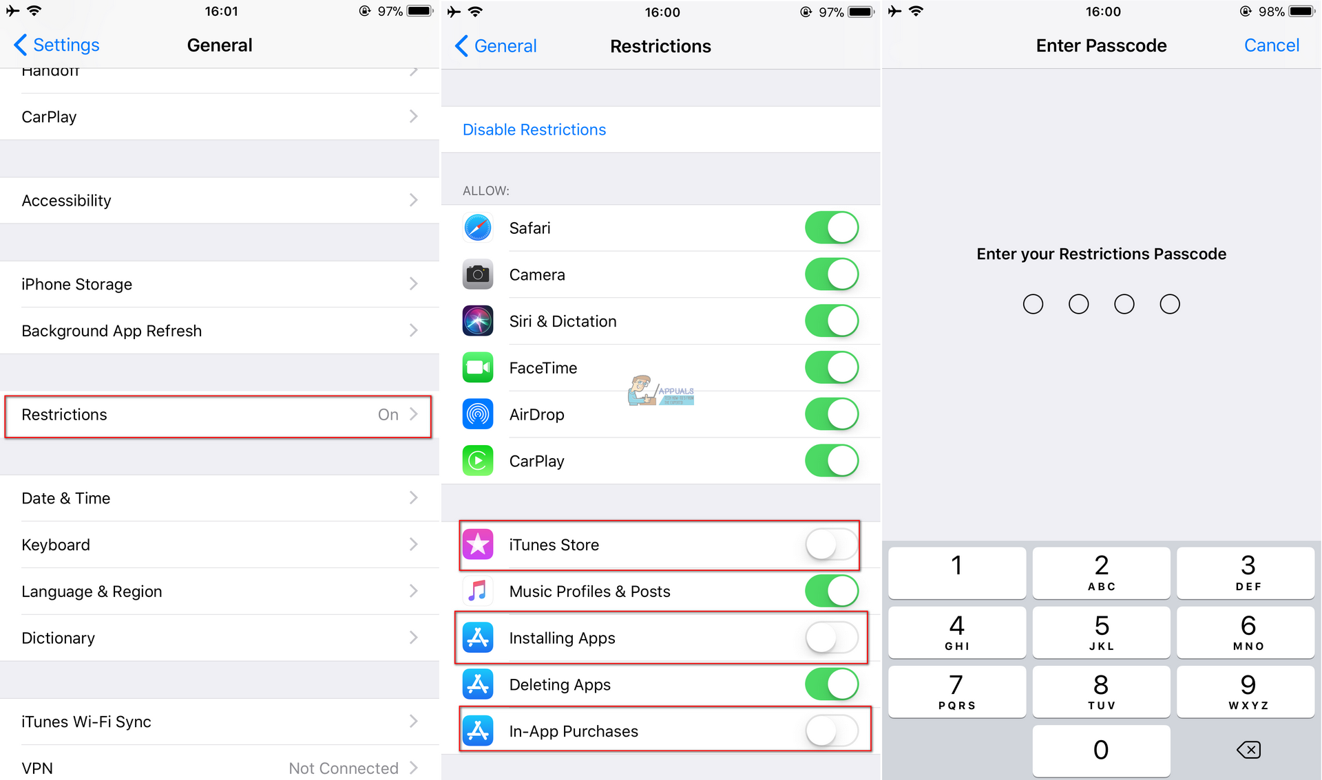 - Create a restrictions passcode, and reenter your passcode for confirmation. Here you can choose a passcode that is different from the one you use it for unlocking your device.