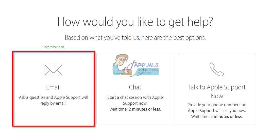- When the site loads up, choose the button for Email. It will take you to a form where you can enter your contact information and specific details.