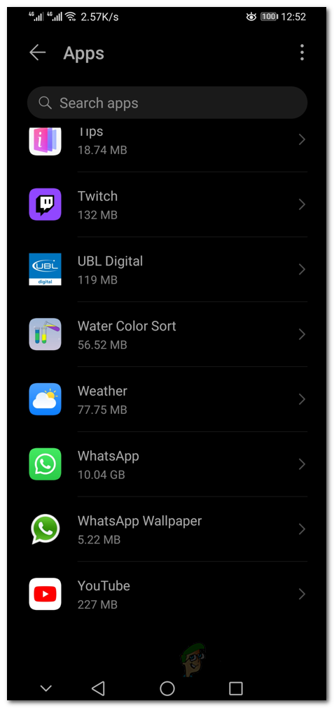 Apps Settings - Now, tap on Whatsapp from the list of apps.