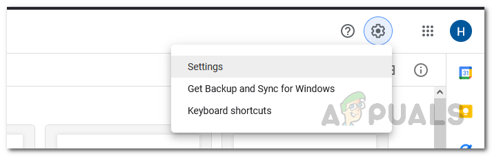 - Once you are on Google Drive’s page, click on the gear icon at the top right corner and choose Settings from the drop down menu.