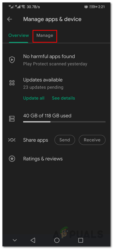 Switching to Manage tab - After that, tap on the Updates available tag given at the top.