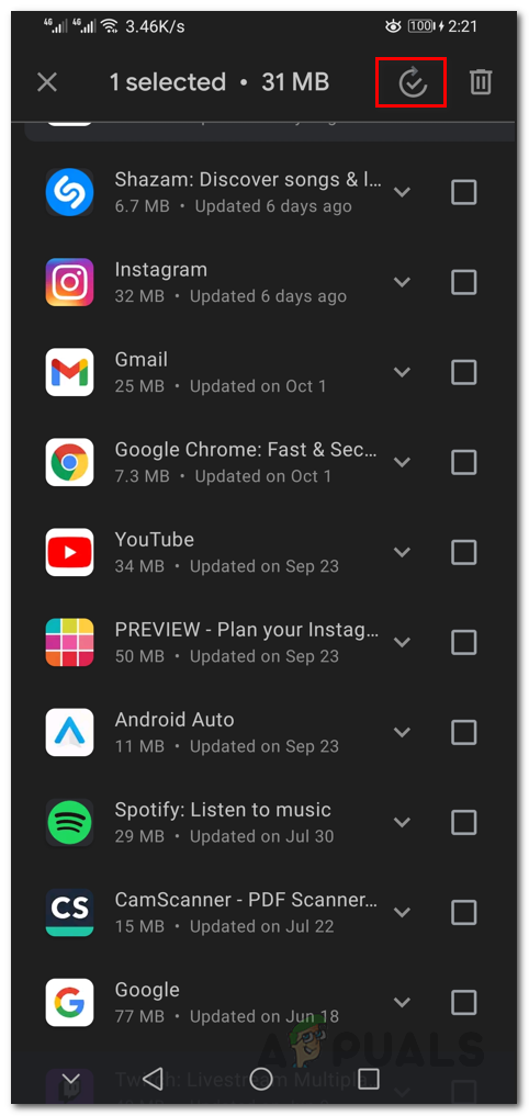 Listing Apps that have Updates Available - From the list of applications, look for Whatsapp and then tap on the checkbox given next to it.