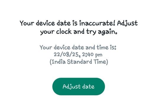 The “Your phone date is inaccurate! Adjust your clock and try again” error appears when you open the WhatsApp app, preventing access. This error usually indicates that your device’s date and time settings are not properly synchronized with network standards. WhatsApp refuses to start if the device clock is too far from real time, because message timestamps and encryption keys depend on the correct time.