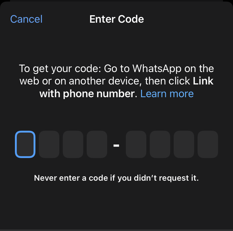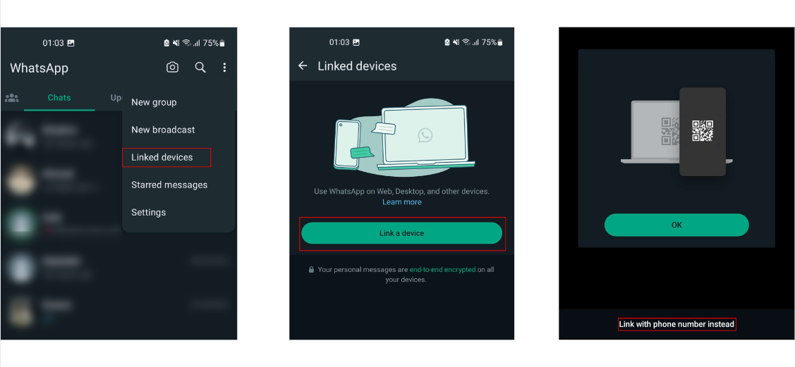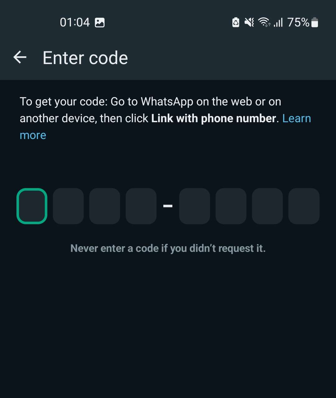 - Go to Linked devices > Link a device > Link with phone number instead.
