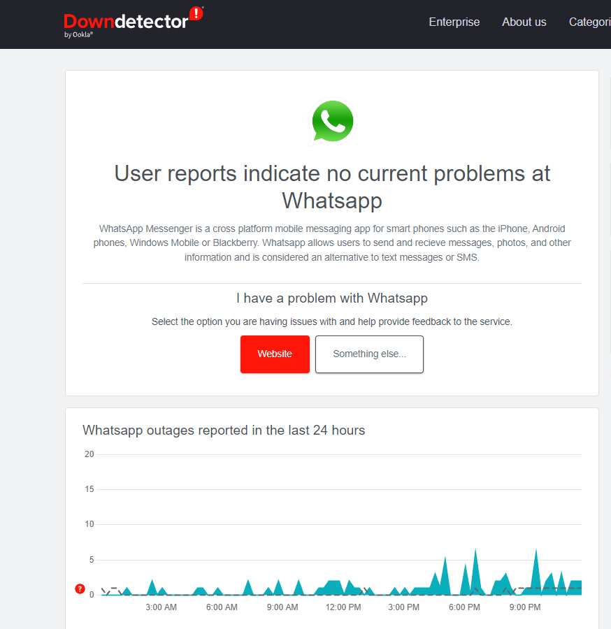 The QR code might not load due to issues on WhatsApp’s backend. You can check the current server status by visiting DownDetector. Look for a graph on the website; a spike in the graph indicates an unusual number of reports compared to the usual volume for that time of day.