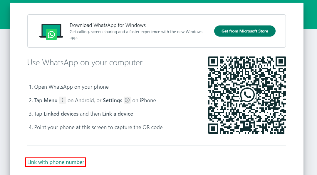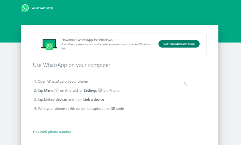 Scanning the QR code is not the only method to connect WhatsApp on your devices. An alternative is to use the Link with phone number feature located at the bottom left of the WhatsApp Web screen.