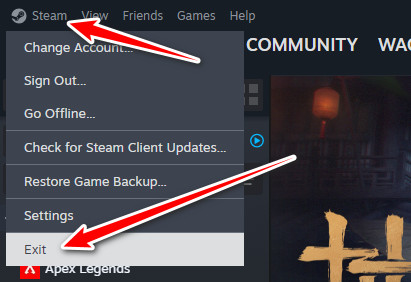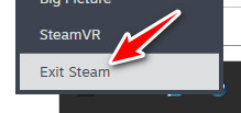 - Close Steam completely (right-click the Steam icon in the system tray and choose Exit).