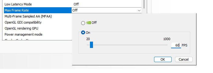 - NVIDIA: Control Panel → Manage 3D settings → Max Frame Rate