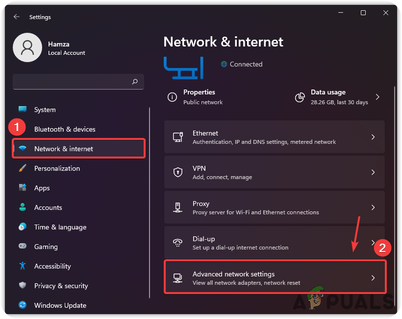 Launching Windows Settings - Open Settings and navigate to Network & Internet > Advanced Network Settings