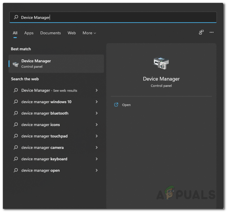 - First of all, open up the Device Manager by searching for it in the Start Menu.