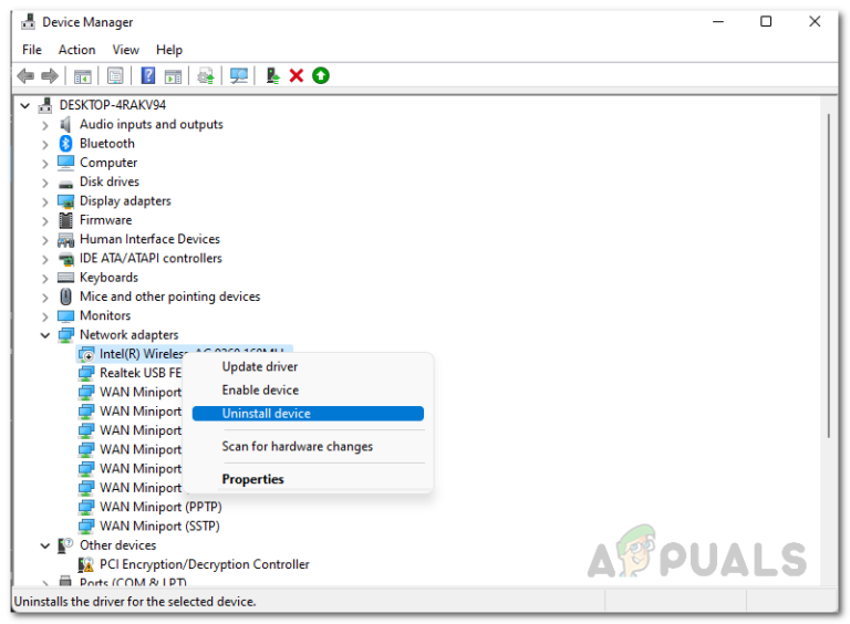 Uninstalling WiFi Driver - Once you have uninstalled the driver, you can go ahead and restart your computer if you wish to let Windows automatically install the drivers. This can potentially fix your issue; however, it isn’t a guarantee.