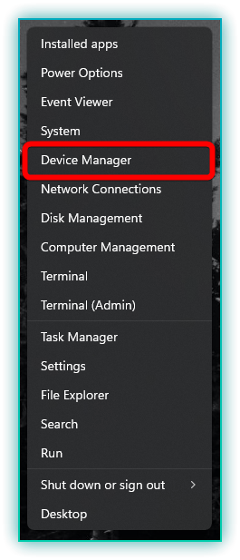 - Right-click the Start button and select Device Manager.