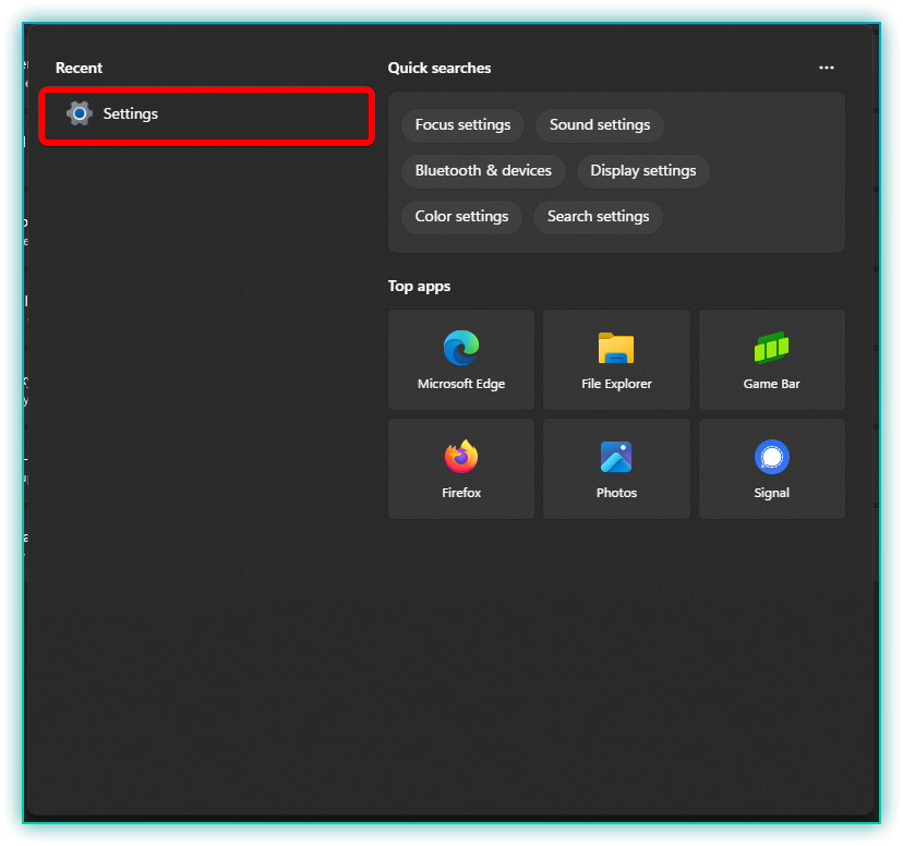 - Click on the Start button and type Settings, then press Enter.