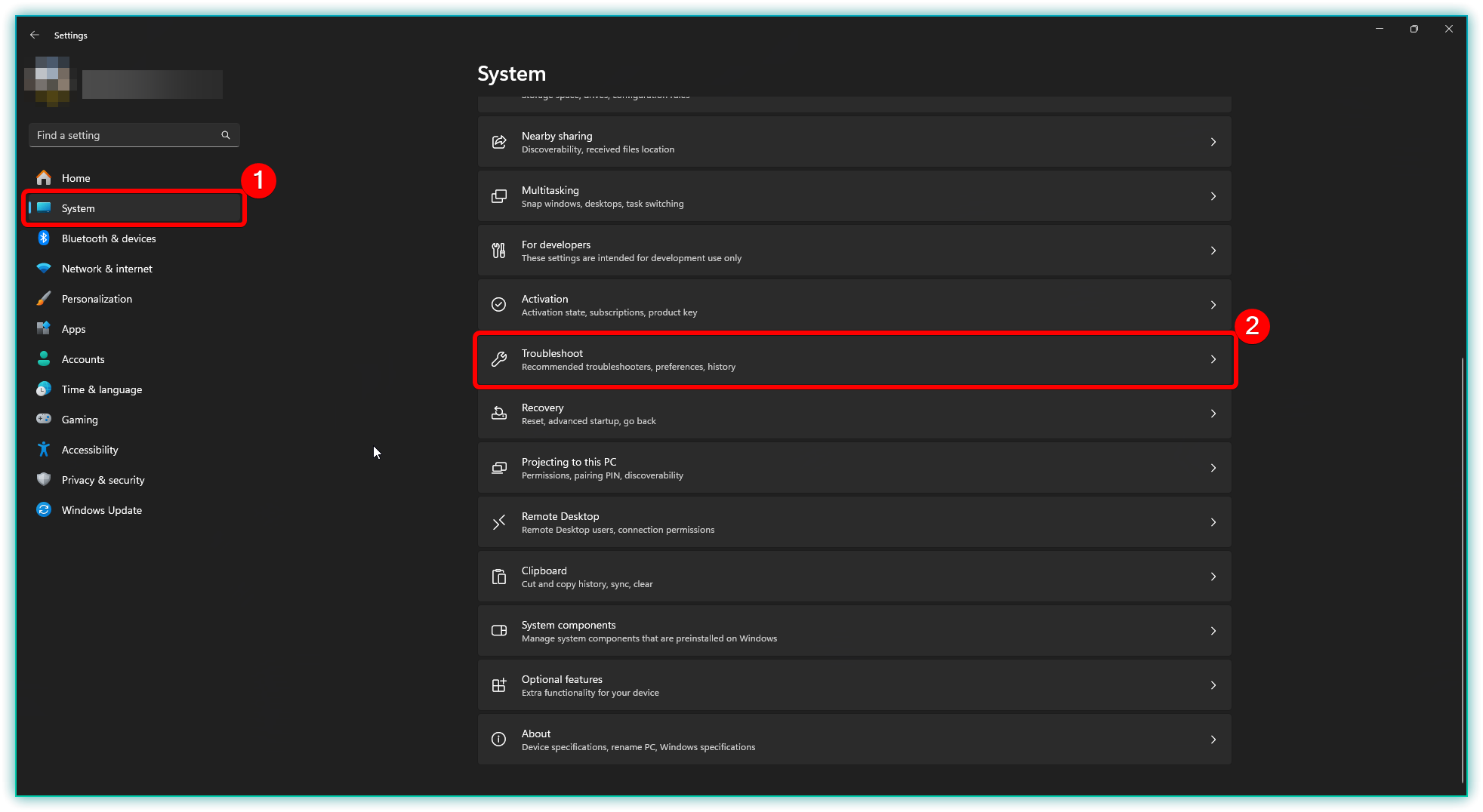 - Navigate to System > Troubleshoot > Other troubleshooters.