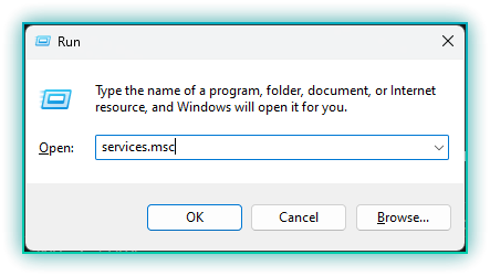 - Type services.msc and press Enter.