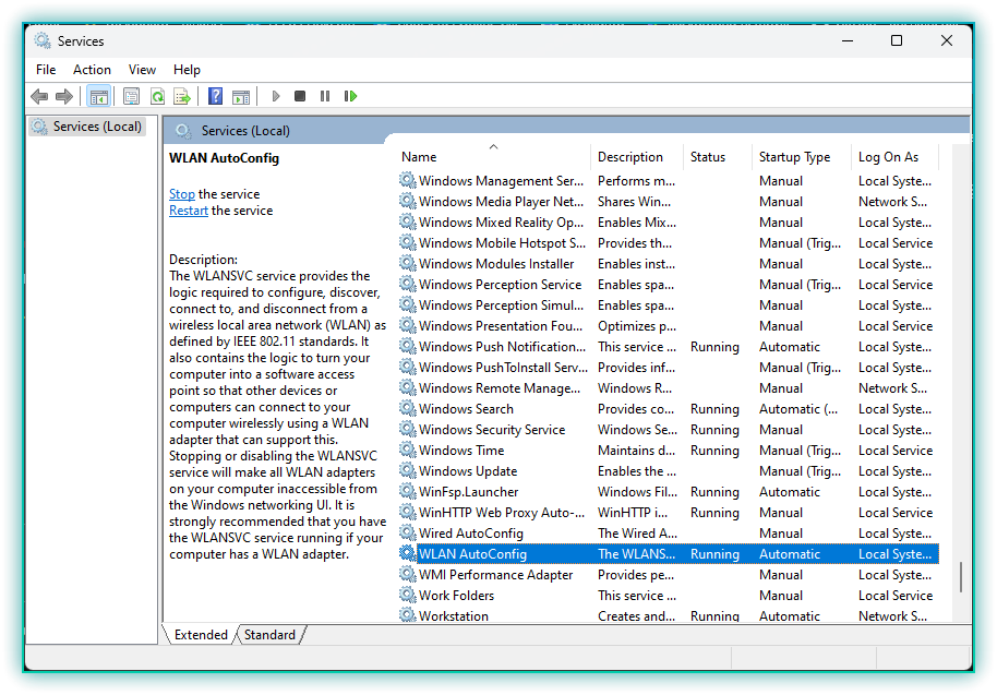 2. Check WLAN AutoConfig Service