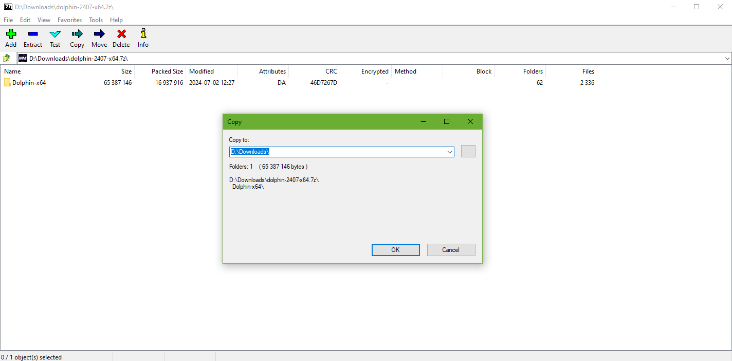 Download the latest version of the Dolphin emulator - Once the file finishes downloading, use 7-Zip to extract it to your preferred location.