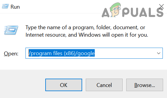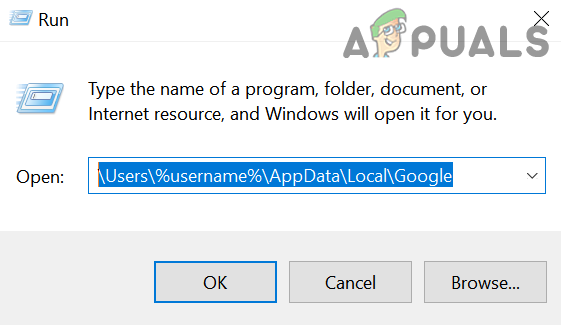 Navigate to the Google Folder in AppData Directory - Now delete the Chrome folder and navigate to the following path in Run: