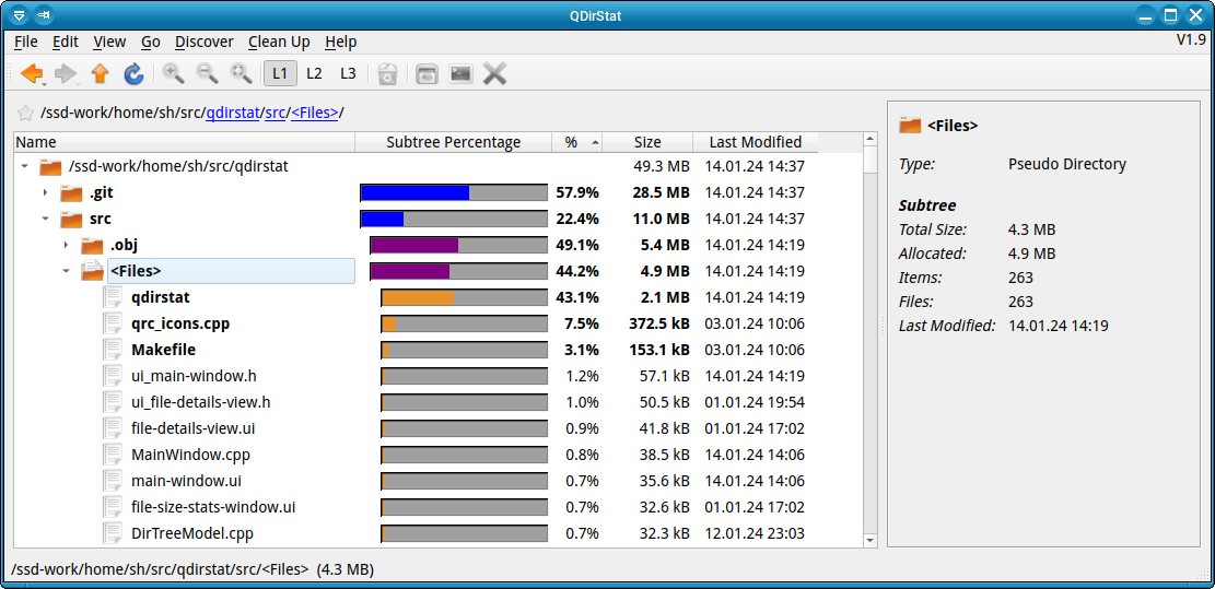 QDirStat’s capability to break down disk usage by file type and directory size helps users quickly pinpoint where disk space is most heavily utilized. This can be particularly useful in environments where disk space management is crucial, such as in server setups or extensive data centers.