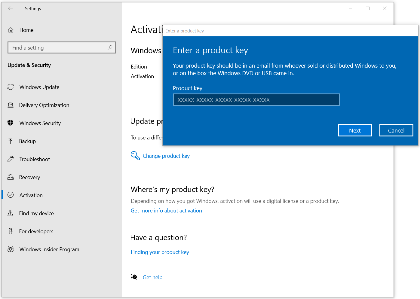 - Enter a product key and then click on Next. Follow the wizard’s steps and restart your computer. Now check if Windows is activated successfully.