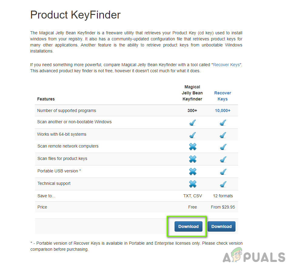 - Open The Magical Jelly Bean website and download Product KeyFinder by clicking on Download. The installer file is around 907 KB.