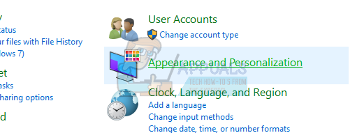 - Click on “Appearance and Personalization” in the Control Panel.