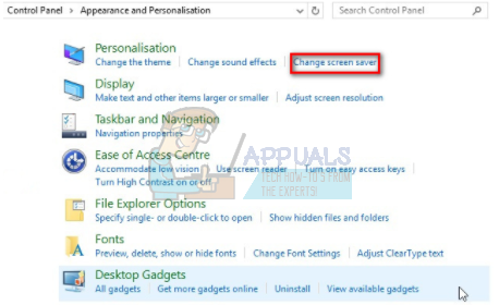 - Select “Change screen saver” under the Personalization section.