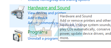 - Click on “Hardware and Sound”.