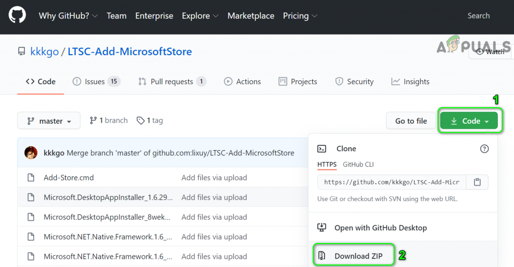 - Open a web browser and navigate to the GitHub link of the Microsoft Store project.