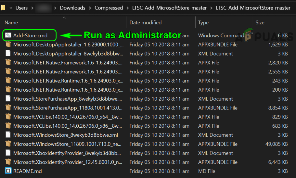 - Now, in the files shown, right-click on the “Add-Store.cmd” file, and in the menu shown, select Run as Administrator.