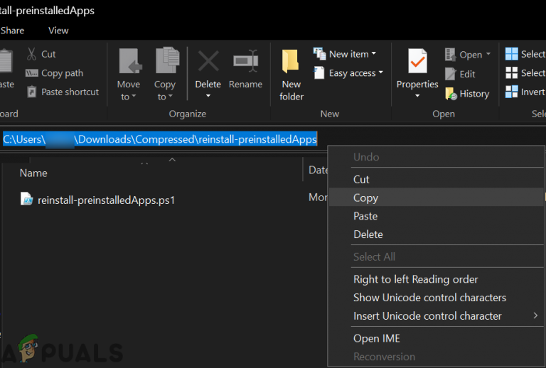 Copy the Path of the Extracted PreinstallApps.Zip - Then right-click on the Windows button and in the menu shown, choose Windows PowerShell (Admin).