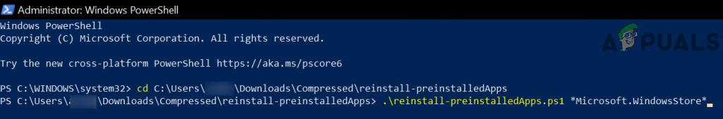 cd C:\Users\(yourusername)\Downloads\Compressed\reinstall-preinstalledApps