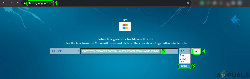 - Launch a web browser and open the Appx package downloading website (This third-party site can generate download links of app installers for the chosen app from direct download links of the official Microsoft servers).