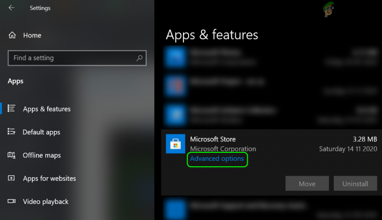 Open Apps in Windows Settings - Now, in the list of Apps, expand Microsoft Store and click on Advanced Options (if the Microsoft Store is not available there, then proceed to step 4).