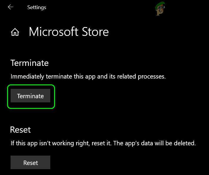 Open Advanced Options of Microsoft Store in Apps & Features - Then click on Terminate (you may have to scroll a bit to find the option) and confirm to Terminate the Microsoft Store.